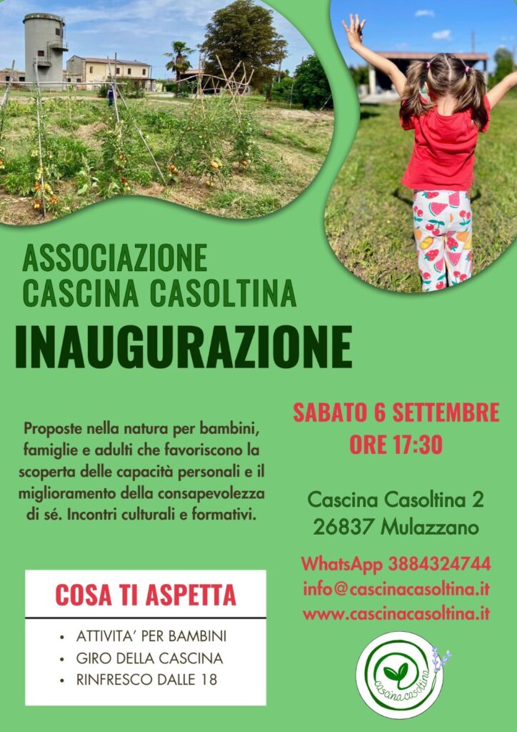 INAUGURAZIONE DELLA CASCINAdi Cascina Casoltinaon Pubblicato il 01/10/202522/10/2025 Vi aspettiamo tutti sabato 6 settembre ore 17:30 presso Cascina Casoltina, Mulazzano (LO) Vuoi chiederci qualsiasi cosa? CONTATTACI