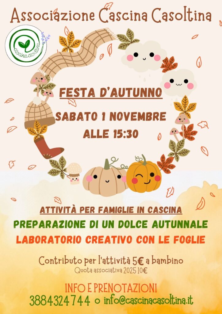 Attività per famiglie: preparazione di un dolce autunnale e laboratorio creativo con le foglie – Sabato 1 novembre ore 15:30 presso Cascina Casoltina, Mulazzano (LO)